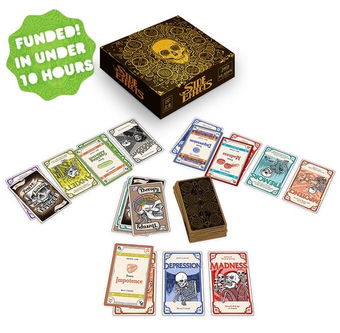 Celui-ci, on comprend bien sa réussite. Même si le succès n'avait rien d'une évidence tant le thème abordé est difficile. Et le traitement pas vraiment "second degré". Peu importe, ils seront probablement 3000 à participer au financement de ce Take that (dans ta gueule) ou des joueurs souffrant de maladies mentales et autres syndromes joyeux tentent de s'en débarrasser pour mieux charger les autres. Une thérapie de groupe bien particulière, au traité graphique lui aussi à part (mais bien fait), qu'on ne recommande évidemment pas à tout le monde. D'autant que le tarif est assez élevé pour juste une centaine de cartes.