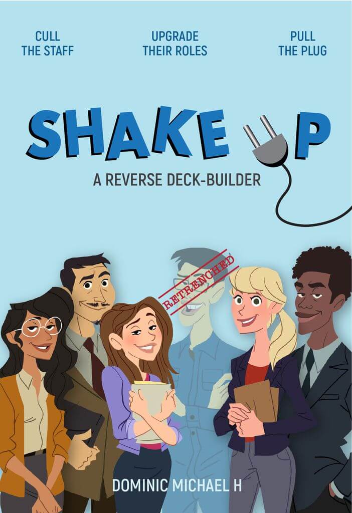Shake Up. Un deck-building à l'envers : vous partez avec un deck complet qu'il faut affiner. Intéressant sur le papier mais tout aussi mécanique qu'un deck-builder. Et quel dommage que d'avoir plaqué ça sur le premier thème qui colle un peu : du dégraissage en entreprise. Sur Kickstarter jusqu'au 20 février.